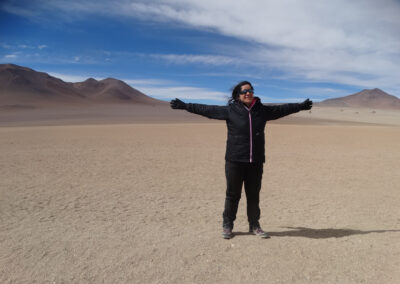 De Uyuni, partiremos em robustos veículos 4×4 para viver uma verdadeira aventura, guiados pela experiência de um guia brasileiro e de um guia boliviano. Além da vastidão hipnótica do Salar, desbravaremos cenários selvagens onde não há estradas, apenas trilhas desenhadas pelo tempo e pelo vento. Entre nossos destinos, estão os mágicos Gêiseres Sol de La Mañana, as águas termais que convidam ao descanso, a enigmática Árvore de Pedra, o singular Museo de Sal, o Monumento ao Rally Dakar e as lagunas de cores surreais, pontilhadas por elegantes flamingos que completam esse espetáculo da natureza.