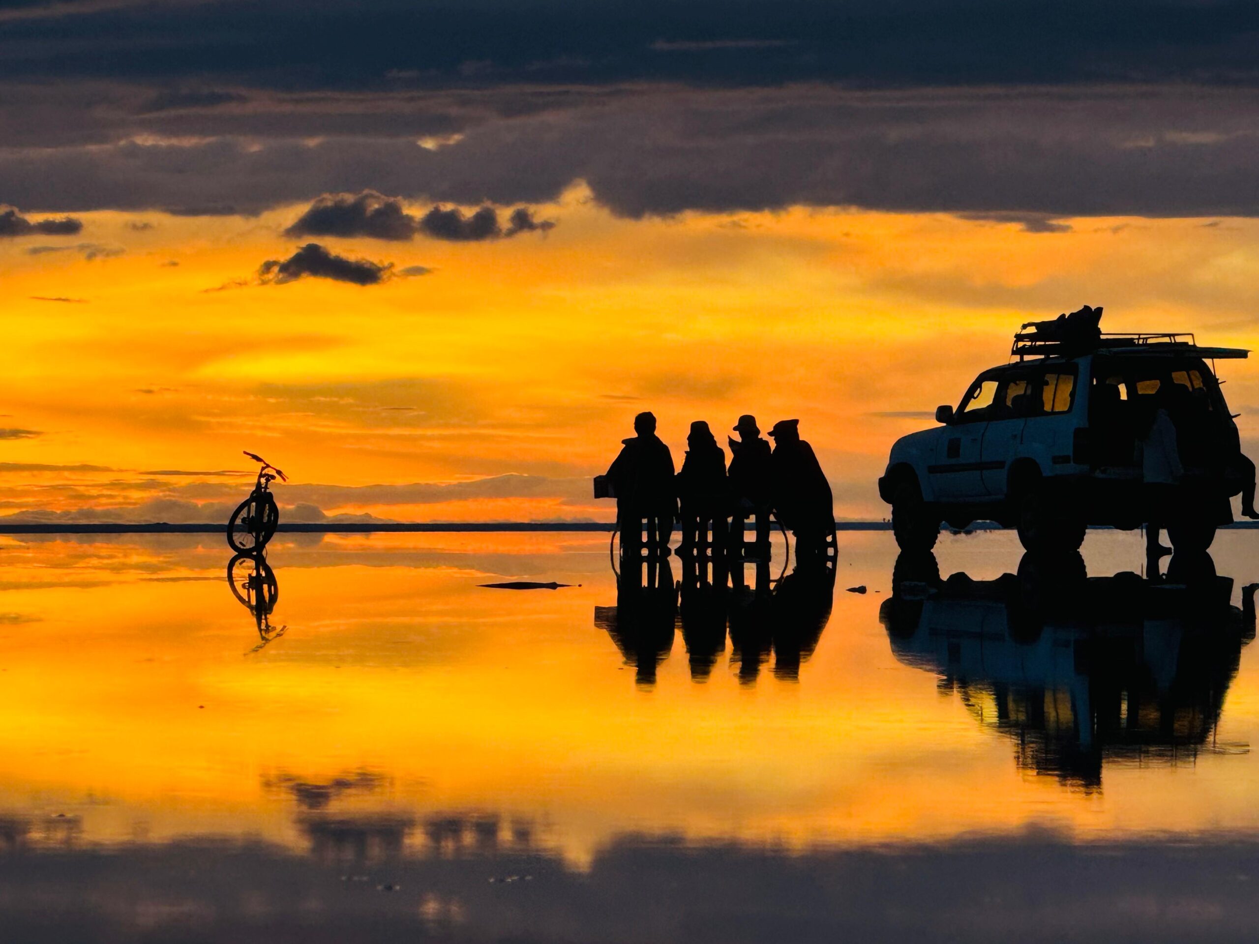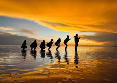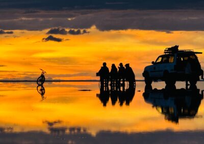 De Uyuni, partiremos em robustos veículos 4×4 para viver uma verdadeira aventura, guiados pela experiência de um guia brasileiro e de um guia boliviano. Além da vastidão hipnótica do Salar, desbravaremos cenários selvagens onde não há estradas, apenas trilhas desenhadas pelo tempo e pelo vento. Entre nossos destinos, estão os mágicos Gêiseres Sol de La Mañana, as águas termais que convidam ao descanso, a enigmática Árvore de Pedra, o singular Museo de Sal, o Monumento ao Rally Dakar e as lagunas de cores surreais, pontilhadas por elegantes flamingos que completam esse espetáculo da natureza.